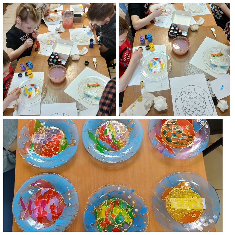 - Роспись декоративной тарелки «Морской пейзаж» в стиле витражной росписи